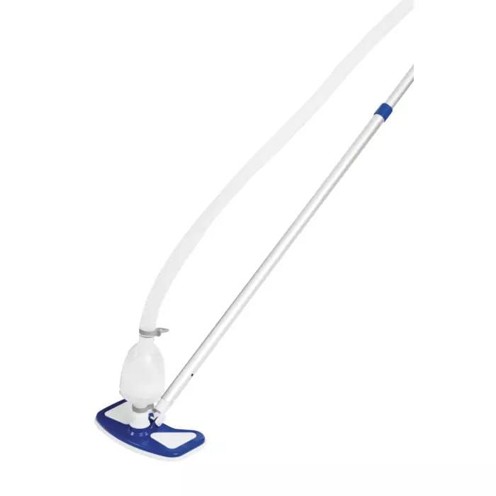 Набор для чистки бассейна Bestway 58237 для сбора мусора со дна и поверхности бассейна. Гофрированный шланг одним концом присоединяется к отверстию в стенке бассейна, через которое поступает вода в фильтрующий насос, а к другому концу крепится одна из насадок для очистки дна бассейна.
