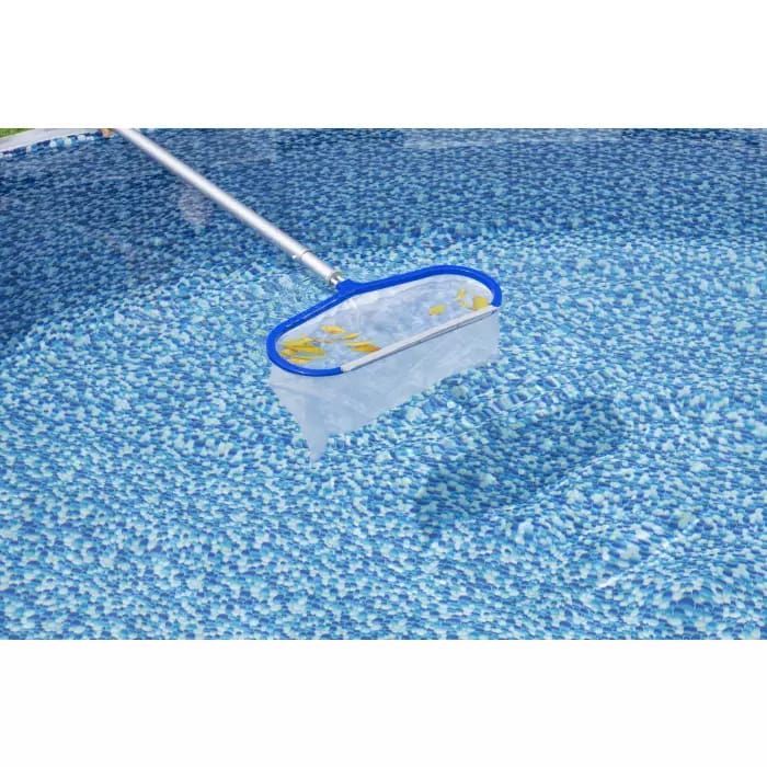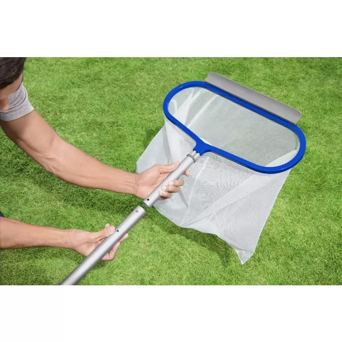 Сачок предназначен для поддержания чистоты бассейнов без особых усилий. В передней части сачка находится небольшое лопатообразное устройство, которое помогает направлять грязь непосредственно в сетку. Рама и поручни сочка изготовлены из высокопрочного алюминия, который соединен с прочной сеткой. Подсоедините насадку к любому держателю (не входит в комплект) с внутренним диаметром 30 мм, чтобы можно было использовать насадку в бассейне любого размера.