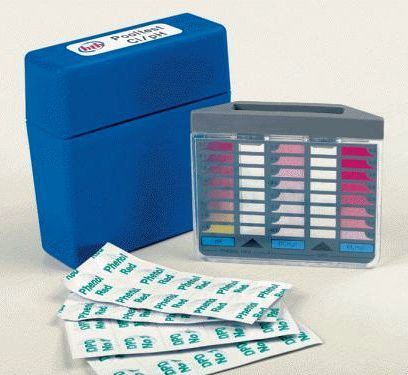 Применение: Таблетка растворяется в воде из бассейна, после чего получившийся цвет соотносится с показателями содержания хлора и уровнем pH воды.