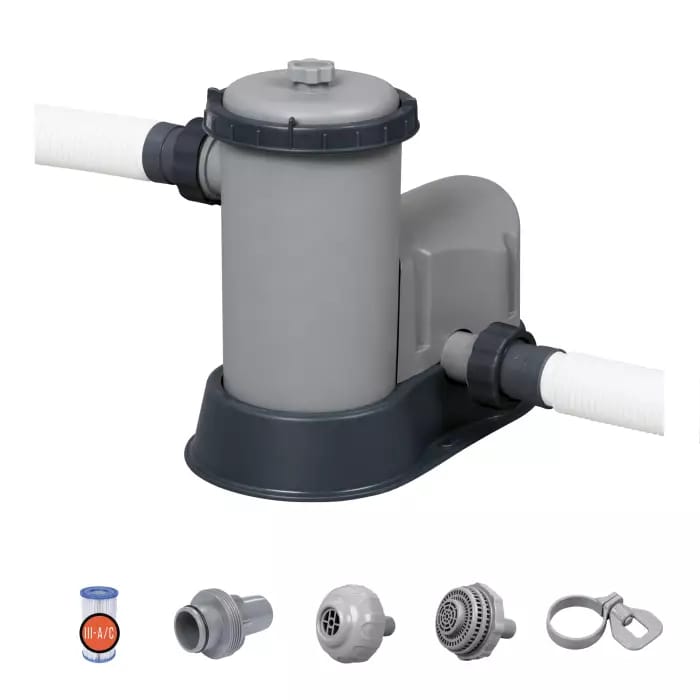Картриджный фильтр-насос Bestway 5678 л/час подойдет для бассейнов объемом до 23000 л. Очищает воду от мусора, грязи, насекомых, водорослей и других загрязнителей. Лучше всего подходит картридж типа III. Мыть картриджи необходимо несколько раз в неделю, полная замена производится 1-2 раза в месяц.