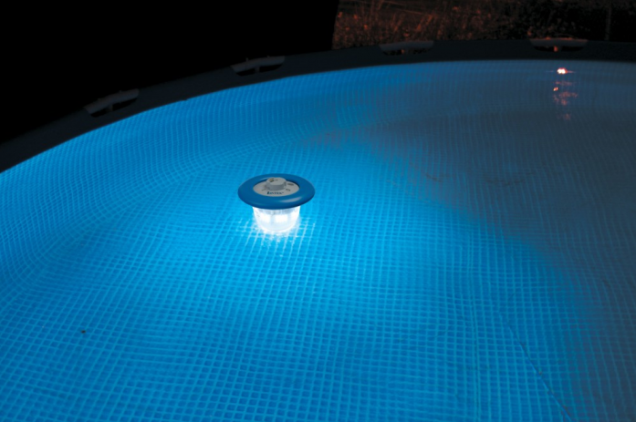 Теплым летним вечером можно использовать подсветку бассейна, которая работает от солнечной батареи. Для любителей гаджетов, будет интересен данный дивайс. Достаточно чтобы днем поплавала на солнце данная подсветка 2 часа, позволит светить целый вечер. Подсветка имеет несколько оттенков свечения.